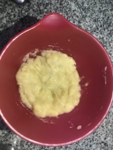 - Peel and mash banana with a fork in a small bowl.