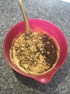 - If using nuts and cacao nibs, fold into batter.