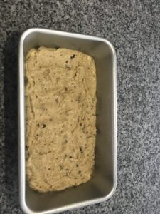 - Pour into prepared 9" x 5" loaf pan. I grease mine with coconut oil.