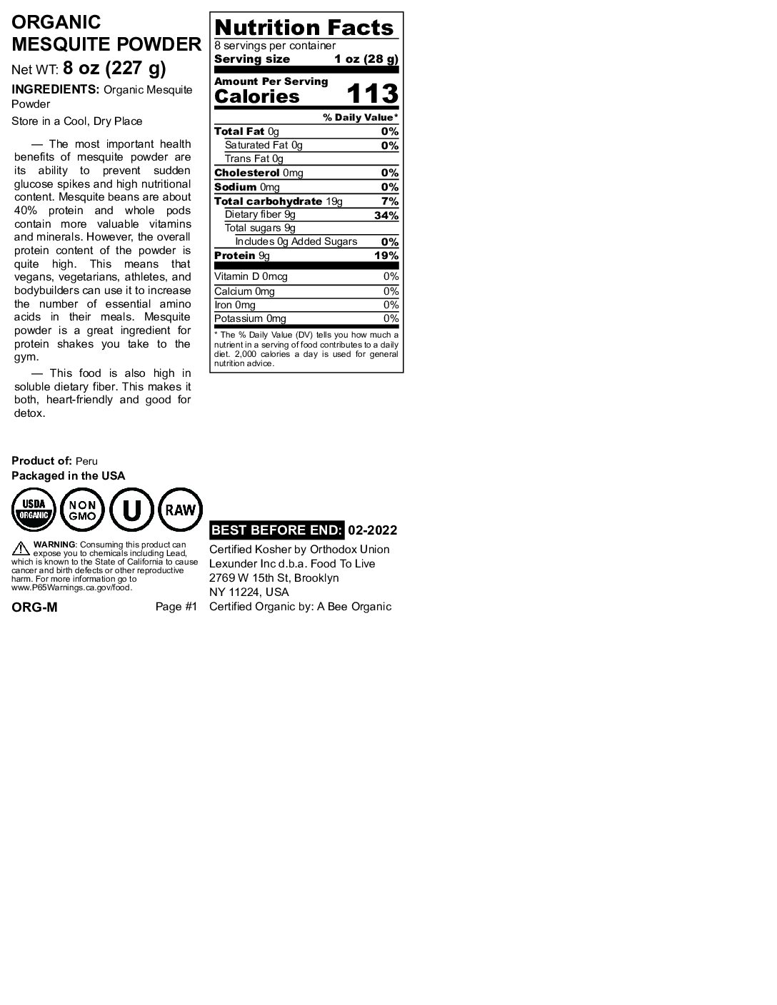 The most important consideration for our Organic Mesquite Powder storage is humidity. It’s imperative to keep the product dry, so make sure it stays in an airtight container. You can store it in the fridge or in your pantry.