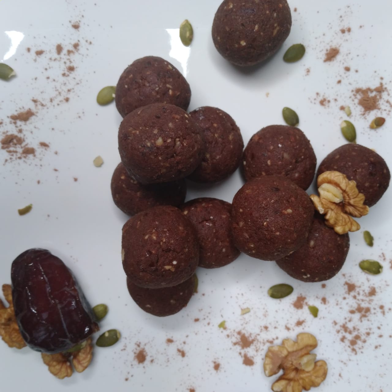 - If desired, you can roll the balls in crushed trail mix (separately broken down in the food processor), or cacao powder. If not, simply enjoy as is. Store in the refrigerator. After being refrigerated they will become a little more firm.
