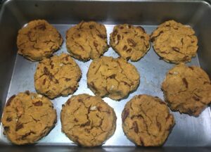 - Place 'scones' on a prepared non-stick pan and bake for 30-45 minutes. They are finished when deep cracks appear and they are slightly firm when you push on them.